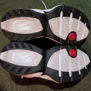 Men's Stylish Nike Air Monarch sneakers in black and white with red accents. Perfect for casual or sporty wear. These are in MINT condition, sized 7.5. Feel free to ask any questions and thanks for shopping my closet.