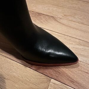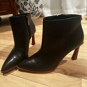 These NWOT all leather booties with wooden 3.5 inch heel make any outfit look so chic! Black leather uppers with beautiful wood heel.