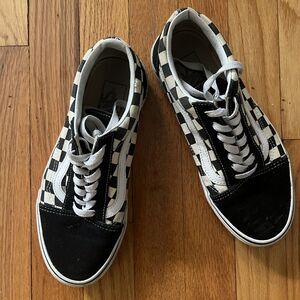 VANS WOMEN'S CLASSIC TENNIS SHOES BLACK WHITE CHECKERS SIZE 7
