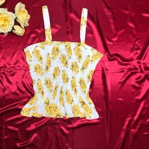 White House Black Market (WHBM) Yellow Pineapple Print Smocked Top