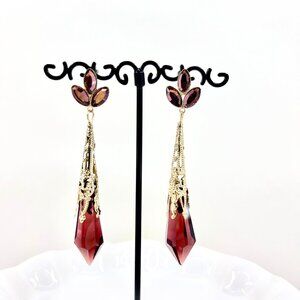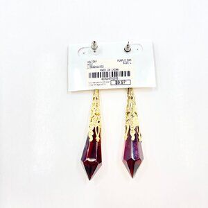 NWT – Charming Charlie – Brown Jeweled Drop Glass Dangle Gold Tone 3.5” Earrings. Earrings are posts, and are 3.5” long by 5/8” at the widest point. The color is more of a dusty mauve than a true purple. Earrings are new with tags and are from overstock or liquidated merchandise. Earrings are in great condition.
