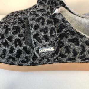Pure Wool Cozy Feet Gray Leopard Print Rubber Sole Velcro Strap Slipper Shoes 6