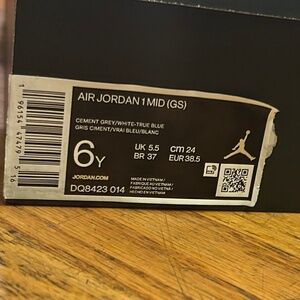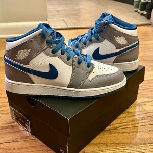 Youth Air Jordan 1 Mid basketball shoes. Like new , perfect condition . Only worn on basketball court , never outside worn a few times ! Then stored in box.