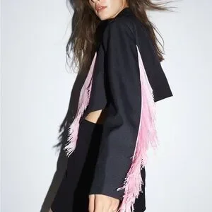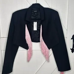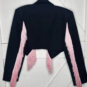 Nasty Gal Premium Tassel Trim Blazer Black with Pink Fringe Size 0