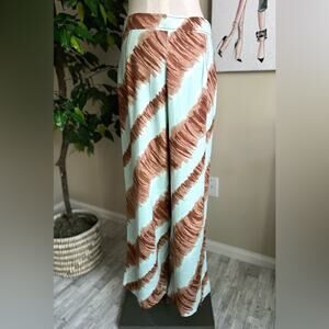 Boho casual blue and brown tie dye-inspired lined wide leg pants featuring: