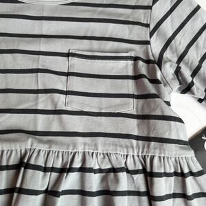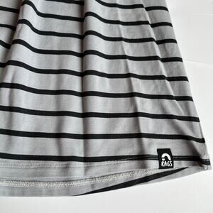 Size 9/10 RAGS Quarry Stripe (grey and black) Essentials Short Sleeve Dress. Perfect dress for all seasons, great alone or layered with a denim jacket or with leggings and so much more. Relaxed fit dress with small pocket on the chest. Made from super-soft modal, cotton and spandex blend. New with tags still attached. No flaws.