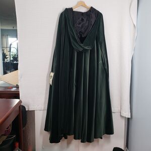 Excalibor Renaissance Fair Cloak Cape Emerald Green Velvet Hooded Medieval LARP