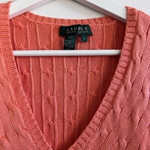 Vintage LAUREN RALPH LAUREN Womens Coral Salmon Cable-Knit Sweater Size S