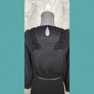 Miss Sixty Black 100% Silk Chiffon Ruffle Sheer Zipper Off Maxi Dress