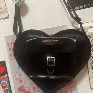 heart-shaped bag in black, real leather. detachable strap, you can make it into a regular shoulder bag, crossbody and backpack. not firm on price, send in an offer :)