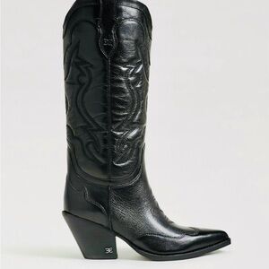 Introducing James - a tall cowboy boot with western tooled detail and Cuban heel. Pull on over skinny jeans or under a deep-slit skirt.
