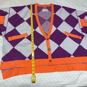 NWOT. FREE PEOPLE. WE THE FREE. PURPLE/LIGHT GRAY/ORANGE. MANNY CARDI . OVERSIZED. SIZE SMALL.