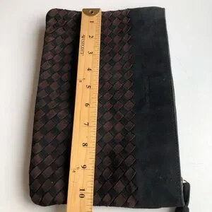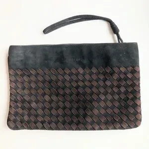 Bottega Veneta Intrecciato Brown Black Woven Suede Leather Wristlet Clutch Bag