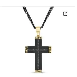 Men's 1/4 CT. T.W. Black Enhanced Diamond and Chain Link-Ends Cross Pendant in Stainless Steel and Two-Tone IP - 24"