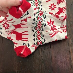 Dear Deer pattern dog pajama in XS. Has minimal stretch.