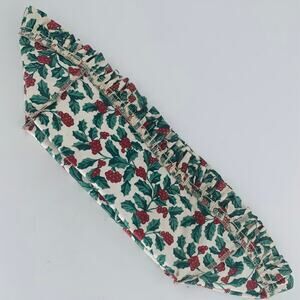 Longaberger Medium Key Basket Liner in a festive Christmas Holly pattern from the early 1990s. This holiday fabric liner measures 9.5" x 5.5" x 4" tall (measured just below the ruffle). It appears to have been used but remains in good preowned condition with no visible marks of use. A perfect addition to a Longaberger collection or a thoughtful holiday gift. Bring a touch of vintage charm to your basket display with this beautiful and classic liner. Ideal for seasonal decorating or everyday use.