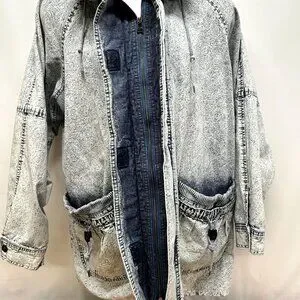 Vintage Acid Wash Denim Jacket East West by The Panda Group Oversized Sz Medium
