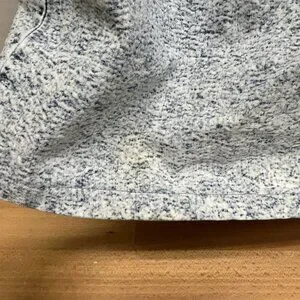 There are a few stains and yellowed spots. The chest measures 26" flat (underarm to underarm) and the shoulder to bottom hem length is 31". Please see photos.
