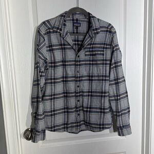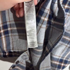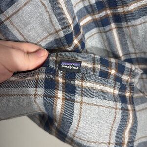 Stylish blue plaid button-up shirt by Patagonia. Perfect for casual wear.