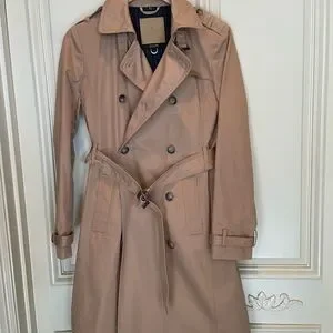 Elevate your style with this classic tan trench coat. Perfect for any occasion, it offers both elegance and functionality.