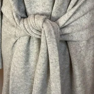 Knit from fine Italian cashmere, this sweater dress is a luxurious addition to any wardrobe. Its fitted silhouette features a crew neckline, long sleeves and an attached tie waist designed to flatter the figure. In neutral tones, it’s the perfect companion to the bold, animal-print accessories of the season.