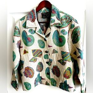 Beautiful wearable art in this Daniel K sea shell jacket. So very versatile for dress up office or dress down jeans. The fabric is so stylish, classic and has the quality to last. If your taste leans toward artsy, loose fitted jacket, this is just the piece, great for office, date night, weddings, holidays, vacations, streetwear, or anything in between jacket is gorgeous!