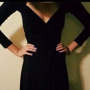 Norma Kamali Sweetheart Neckline Black Wrap Dress Stretch Jersey Long Sleeve XXL