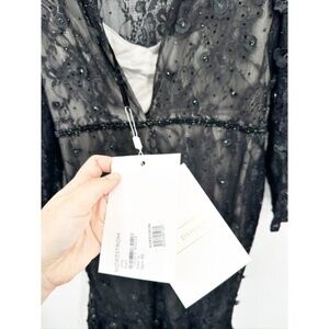 Mac Duggal 67703 Black Floral Appliqué Long Sleeve Cocktail Midi Dress Size 16