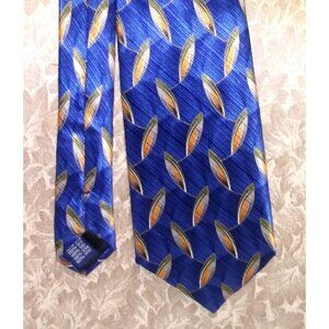 Mens Silk Tie Blue Geometric print Meeting Street Men's Necktie HANDMADE EUC
