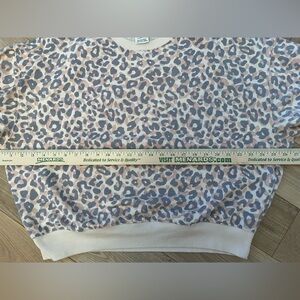 Pink Stylish leopard print sweatshirt. Features a mix of peachy-beige, cream, and gray colors. Size small. Baggy fit. So soft