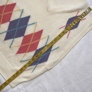 Vintage Inner Visions Cream/ Multicolored Argyle V-Neck Sweater Vest- M