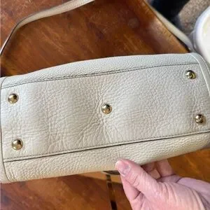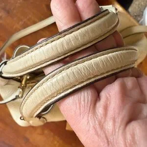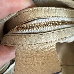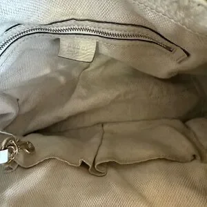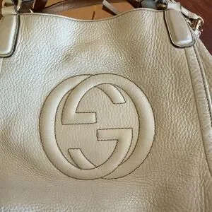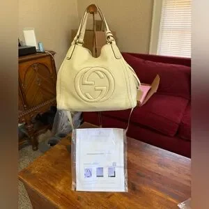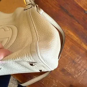Gucci SoHo Crème in EUC-VGUC as it is pre loved. It has its original crossbody/shoulder strap and tassel. There are minor rubs on the corners and the handles show some minor signs of