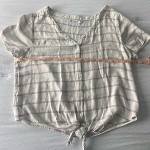 Super soft and comfy lightweight shirt. The size small has an oversized fit and is just a little too loose and low cut around my neck. It’s already been washed so it will not shrink. It fits me like more like a medium. This would be super cute on someone with a bigger chest than me.