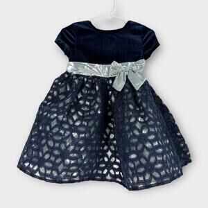 Blueberi Boulevard Toddler Girl’s Size 2T Navy Blue Silver Metallic Bow Party Dress