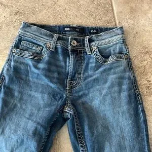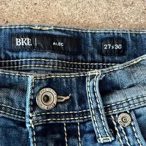 Alec blue stretch jeans for men by BKE. Perfect for casual wear. Sz 27 x 30 waist flat approx 13” rise approx 9” inseam approx 29 1/2”