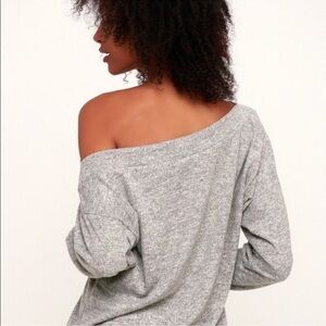 Lulus Cozy Days Heather Gray Asymmetrical Off the Shoulder Fleece Top size Small