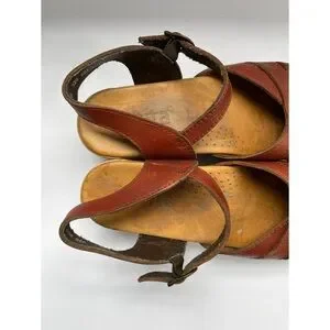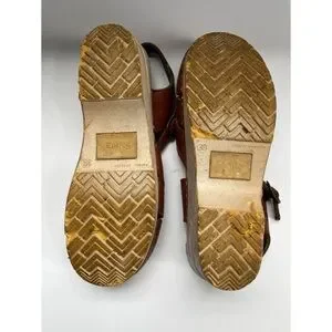 Super cute clogs from Sanita, women’s size 39. Nice rusty brown color. Some wear on the straps as shown and some chunks missing from soles. Could clean up a little! Come from a smoke free home. Thanks!