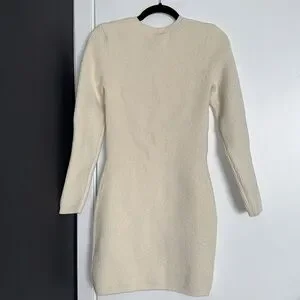 This mini dress from alexanderwang.t flaunts a cozy boucle-knit design and bodycon silhouette. This long-sleeve style is finished with a buttoned neck and cutout chest. Never been worn. Tags still attached.
