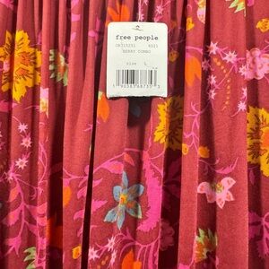A Vibrant, Festive Free People floral blouse in a striking red hue. Perfect for adding a pop of color to your wardrobe. A dreamy silhouette pairs with a feminine floral print on this gorgeous top. Designed with rouched sleeves, cinched waist, ruffle arm detail, and a blousy fit.