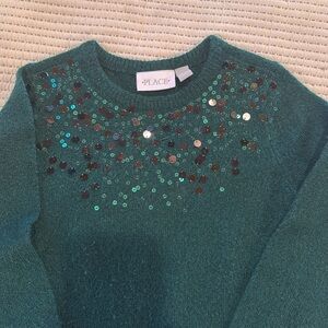 Girls 7/8 medium dark green sweater dress with sequins. Children’s Place. Worn once or twice. Smoke free home.