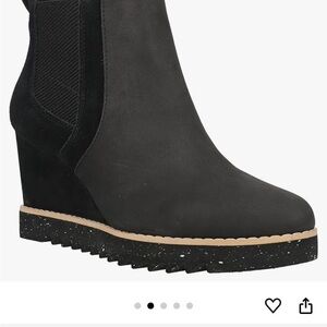 Brand new in box. 🗃️ Elevate your style with Toms black elevated desert wedge shoes, featuring a sleek platform sole for added height and comfort. The smooth, matte finish and easy slip-on design make these wedges a versatile addition to any wardrobe. Perfect for both casual and formal occasions, they offer a blend of elegance and practicality. Genuine leather.