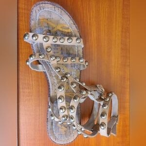 Sam Edelman Eavan Studded Gladiator Leather Sandal Natural Sand Sz 8.5 ON TREND