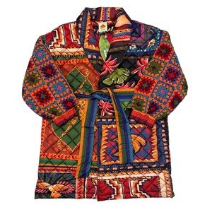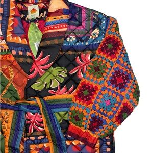FARM RIO Patchwork Coat Quilted Crochet Sweater Sleeve Trench Boho Print Jacket