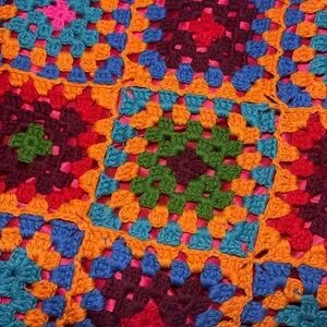 Quilted style stitching, 2 side pockets, mixed media design, crochet sleeves