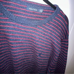 Experience the perfect blend of style and comfort with this Nautica crewneck sweater. Featuring a striking blue and red striped pattern, this sweater is crafted from a soft knit material for a relaxed fit. Ideal for casual outings, it offers a timeless look that complements any wardrobe.