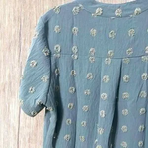 Teal Short Sleeve V-Neck Polka Dot Chiffon Embroidered Top.