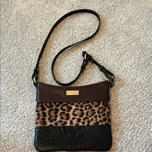 Brahmin Brown and Black Crossbody Bag with Leopard Print
