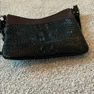 This Brahmin crossbody bag combines elegance and functionality with its striking brown and black color palette. The bag features a sophisticated leopard print accent, adding a touch of wild charm to its design. Perfect for everyday use, it offers a blend of textures and a medium size for versatile styling. 10” wide x 9.5” tall. Adjustable length strap.