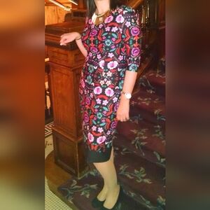 Elegant floral dress with vibrant colors, perfect for any occasion.