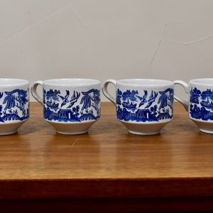 Vintage Large Flat Cup Blue Willow (Georgian Shape) by CHURCHILL Set of 4
